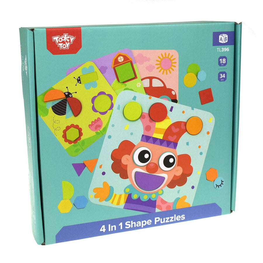 Inside this beautiful box are 4 shaped puzzles. Different shapes have been cut out from these pre-printed cardboard puzzles. A wonderful simple board that helps little ones to learn shapes and colours with ease. Promotes fine-motor development and improves sorting skills. Guaranteed to keep young minds fully engaged with all these different shapes and vibrant colours.