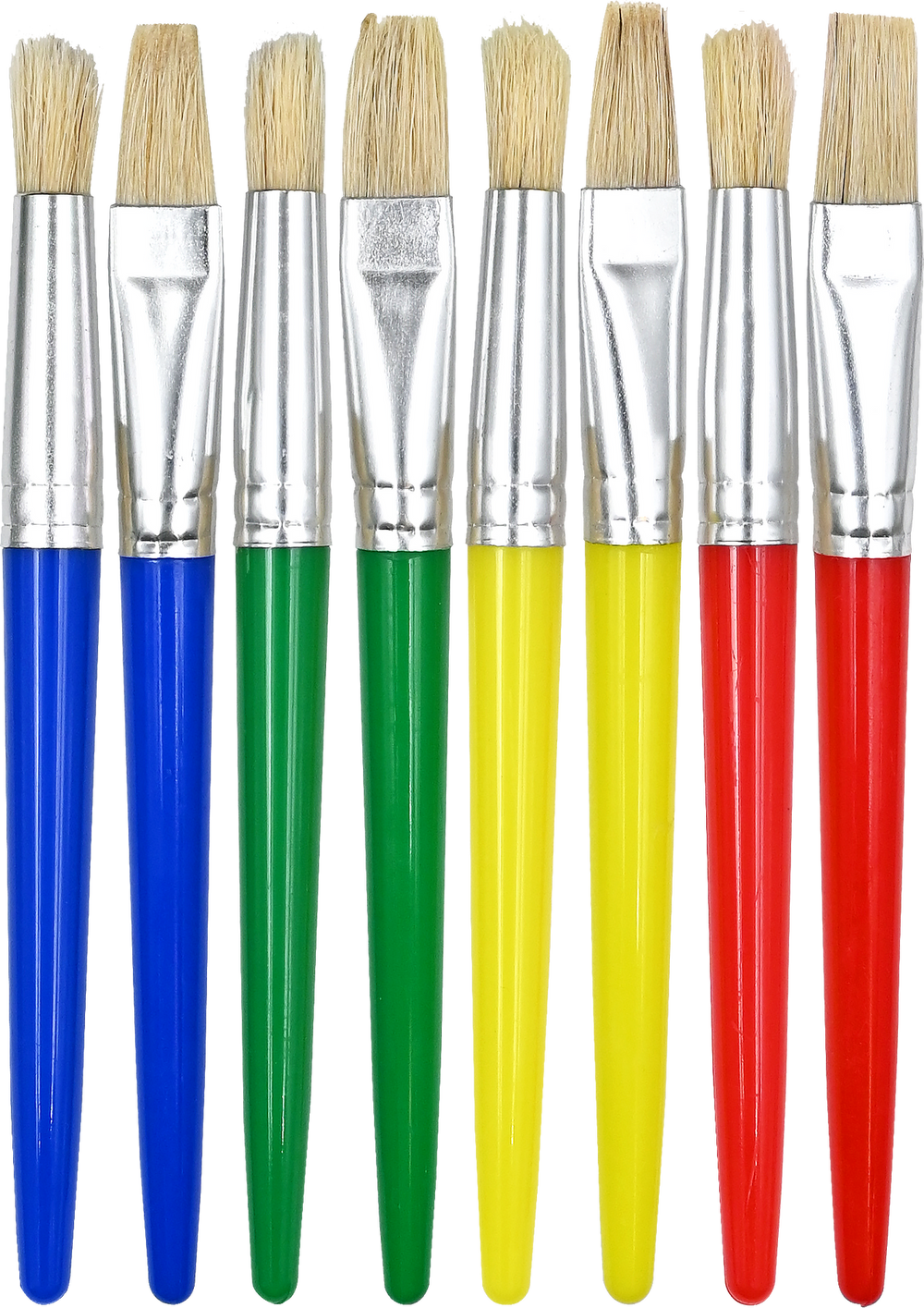 - Set includes 4 round brushes and 4 flat brushes with thick and colorful handles.