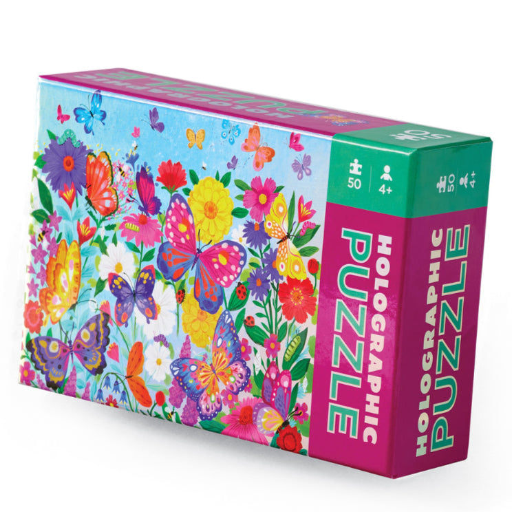 Children will delight in exploring this beautifully illustrated Butterflies puzzle in our top-selling holographic format - but in a new mini size with 50-piece count!