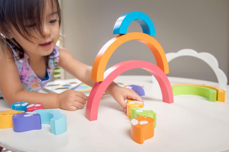 - Making a rainbow. Once the colours are learnt children can follow on with the introduction of the concept of smallest to largest or largest down to smallest. Pick and place the smallest piece of the rainbow. Which piece comes next? Or pick and place the largest piece of the rainbow etc.