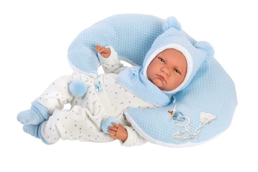 Crying baby Lala is so cozy, it’s impossible to be warmer and more comfortable on his pillow. His body is soft and if you press his belly he cries and says mummy and daddy.