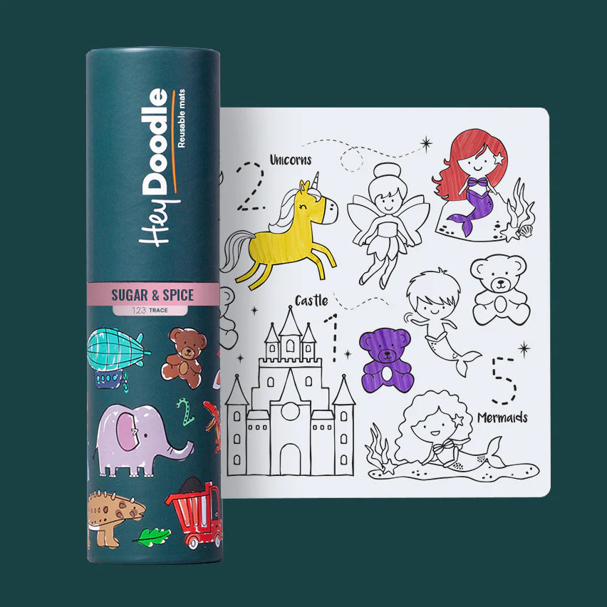 *Pack includes 1 HeyDoodle MiniMat (30x20cm), 3 HeyDoodle Markers and a travel tube.