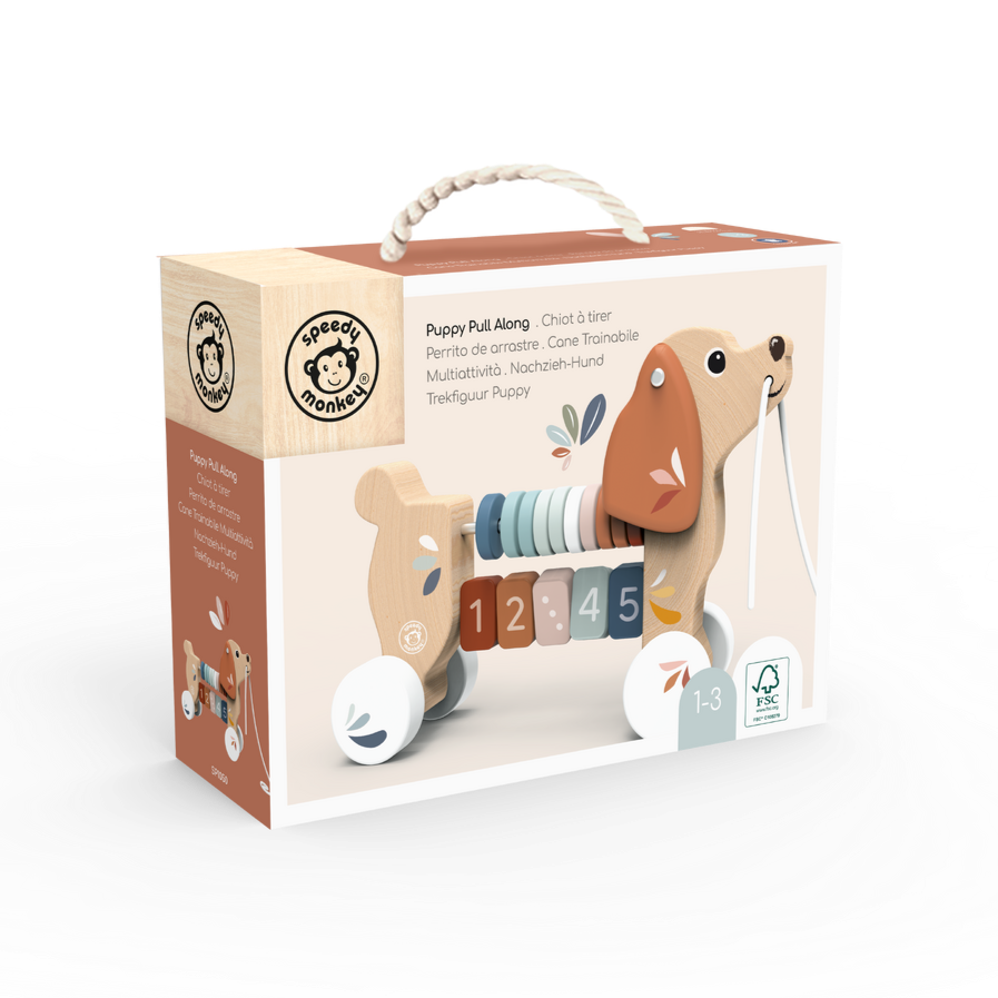 Meet your little one's new best friend, the Puppy Pull Along! Designed to delight and encourage movement, this adorable wooden puppy rolls along wherever your toddler goes, making it the perfect companion for early walkers and adventurers aged 1-3.