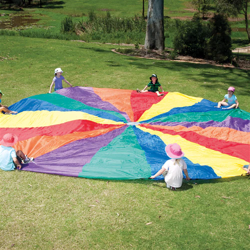 Parachute play also allows children to be introduced to scientific and mathematical concepts, including force and flow.