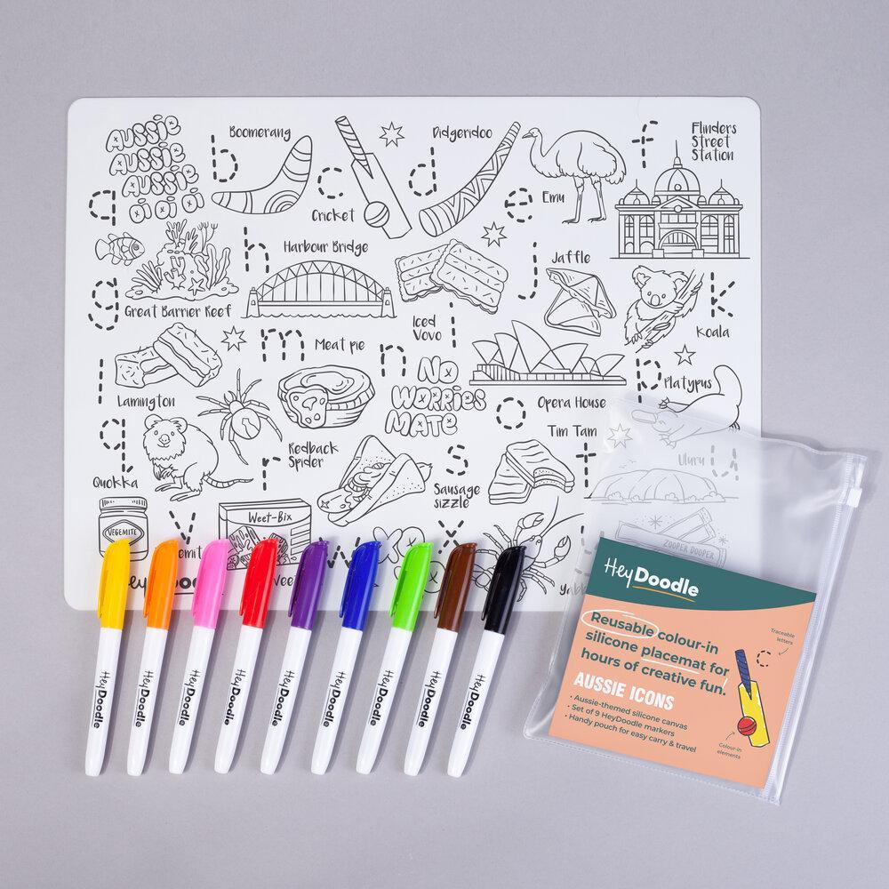 Reusable Colour-in Placemat - Aussie Icons ABC's