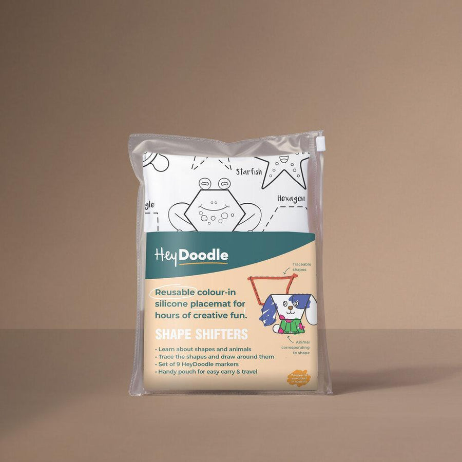 *Pack includes 1 HeyDoodle Mat, 9 HeyDoodle Markers and a travel pouch.