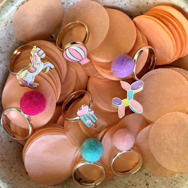 The Unicorn Ring is adjustable and features a matching charm with our Unicorn Carousel Bracelet, as well as our Unicorn Carousel Necklace in Gold, Silver, and Deluxe version with coloured accents and a pink tassel.