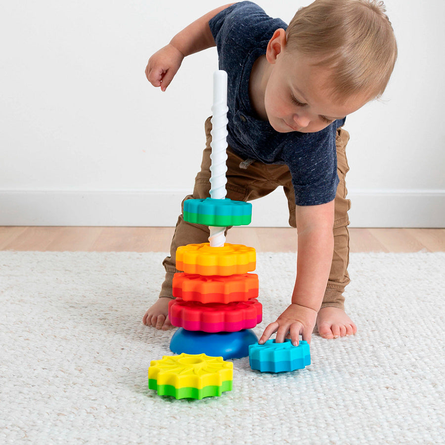 It's a stacking toy with a spin—literally!