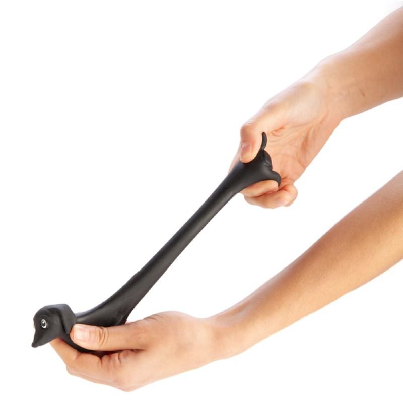 Filled with textured sand that holds whatever shape you mould it into. Stretch out and mould him back into shape!