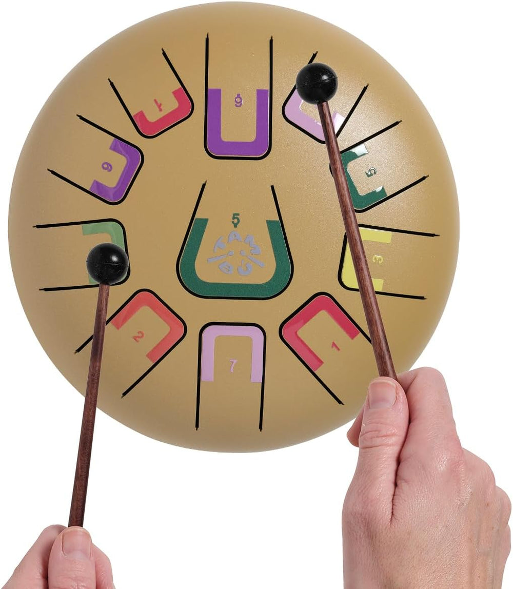 TAMBÚ steel tongue drum is a precious musical instrument to start in the fascinating world of percussion. It is a tongue drum and can be played in different ways. TAMBÚ emits different notes related to each other with a harmonious, long-lasting sound ("sustain"), which allows generating enveloping and very relaxing atmospheres.