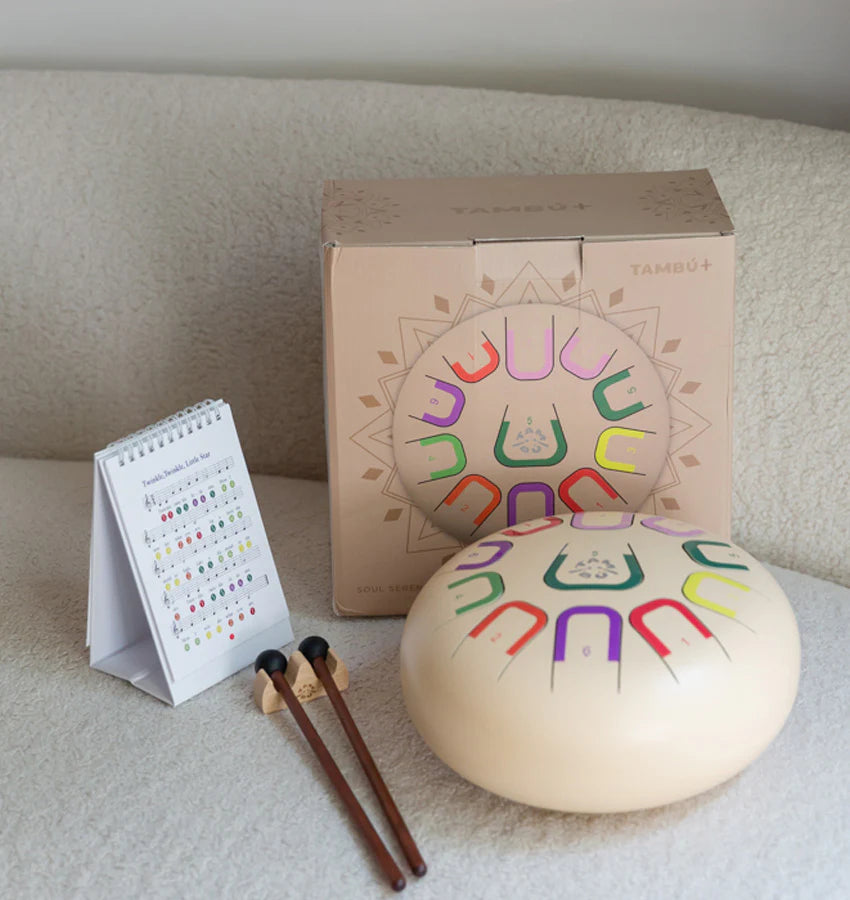 Tambú is an innovative tongue drum designed for all ages. It allows you to create harmonious melodies from the very first moment, with no prior musical knowledge required. Its colour and number coding system makes learning intuitive and fun.