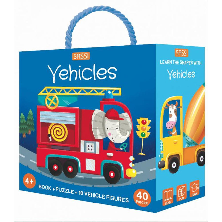 The shiny packaging contains a 10-page book, a 40-piece puzzle and 10 vehicles to fit upright onto the puzzle base.