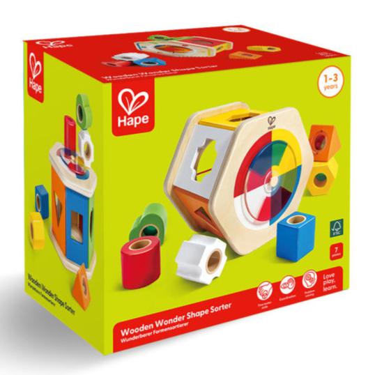Introduce your child to the world of colours and shapes with our Wooden Wonder Shape Sorter. Watch as they engage in hands-on learning, sorting vibrant shapes, discovering creativity and cognitive development through play.