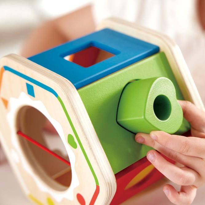 GROWING MOTOR SKILLS: Manipulating the shapes and aligning them with the slots requires a pincer grasp, where the thumb and index finger work together.