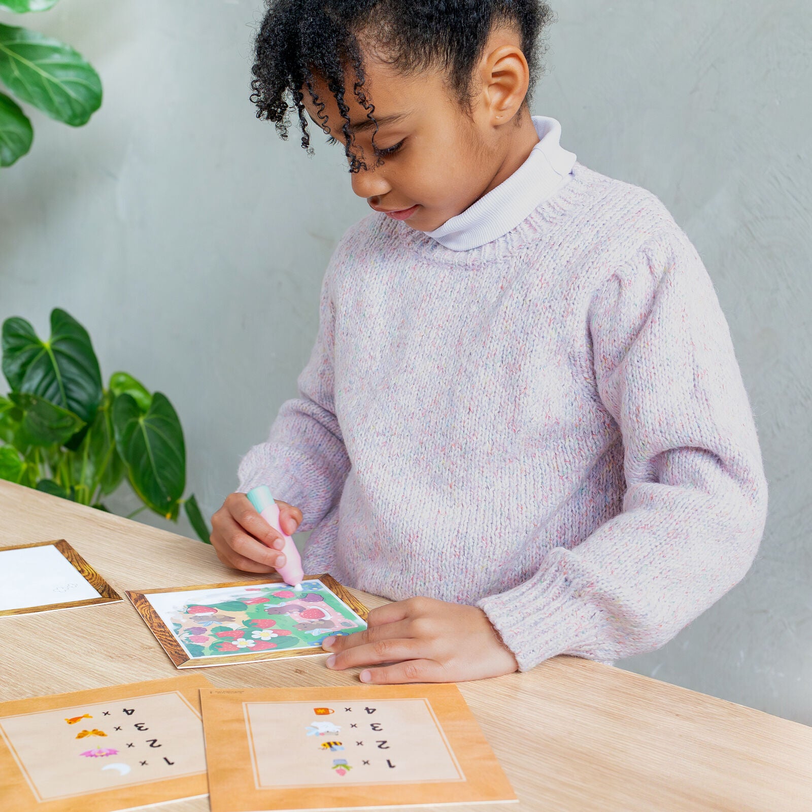 This super sweet Fairy Friends-themed set features gorgeous illustrations of fairy-winged creatures frolicking about. With four unique scenes to reveal, play is extended with the search-and-find puzzles on the back of each card.