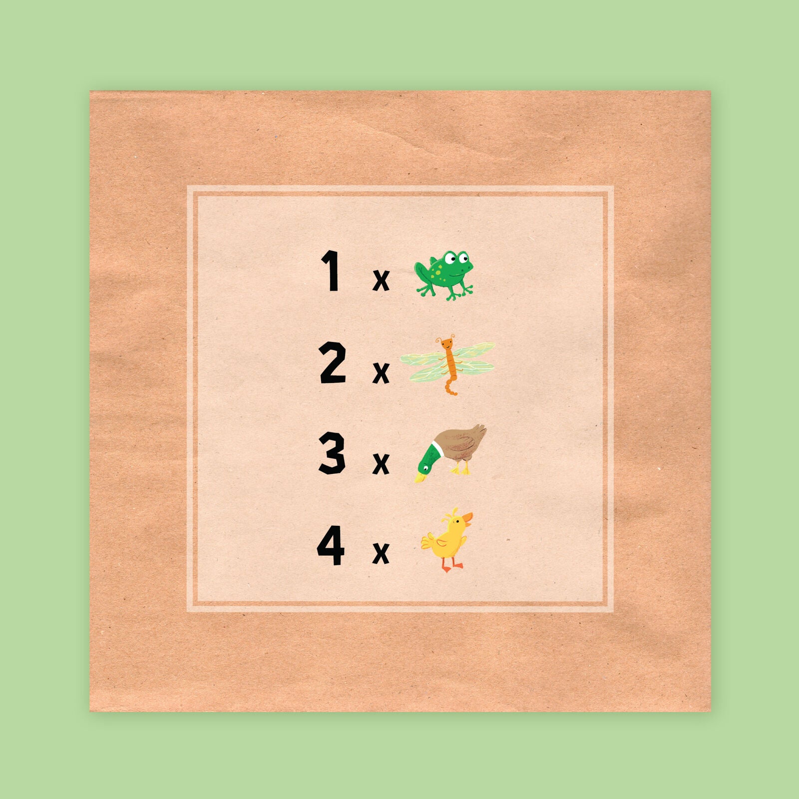 Includes 4 illustration/activity boards (with counting activities on back) and 1 water-brush
