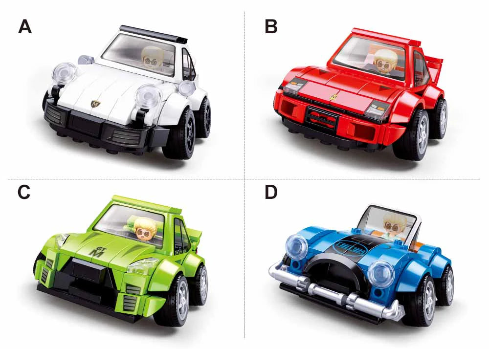 The M38-B1205 Sluban MCAR CONVERTIBLE DISPLAY OF 8 is a beautiful building set from the Car Club series. Order this box of Sluban building blocks for hours of fun.