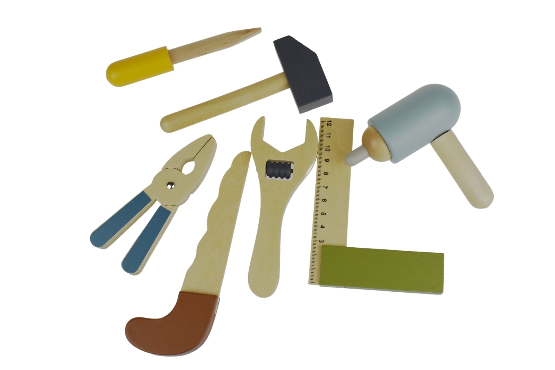 Playing with a wooden toolbox and tools can help develop fine motor skills, hand-eye coordination, and dexterity, making it an excellent educational toy.