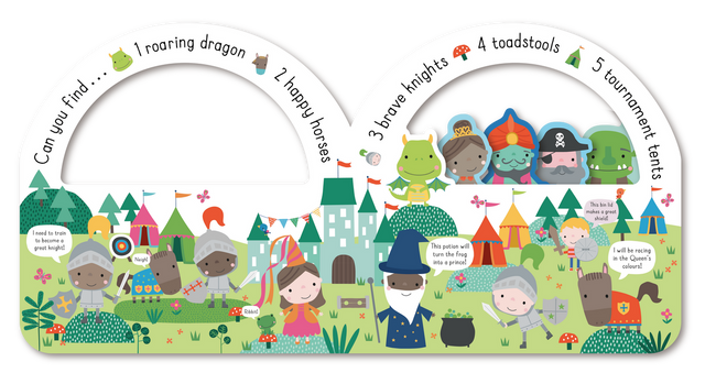 They're a carry-case board book format that has integrated character flaps with can you find me and character speech on every spread. Your little one will want to take this wonderful book everywhere using its comfortable carry handle!
