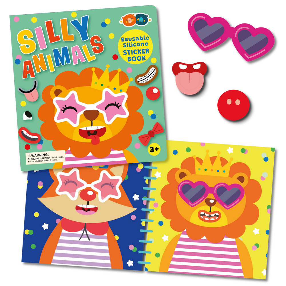 Create your own Silly Animal Scenes, with this fun and interactive set, concealed wiro book with 8 different scenes and two sheets of reusable silicone stickers