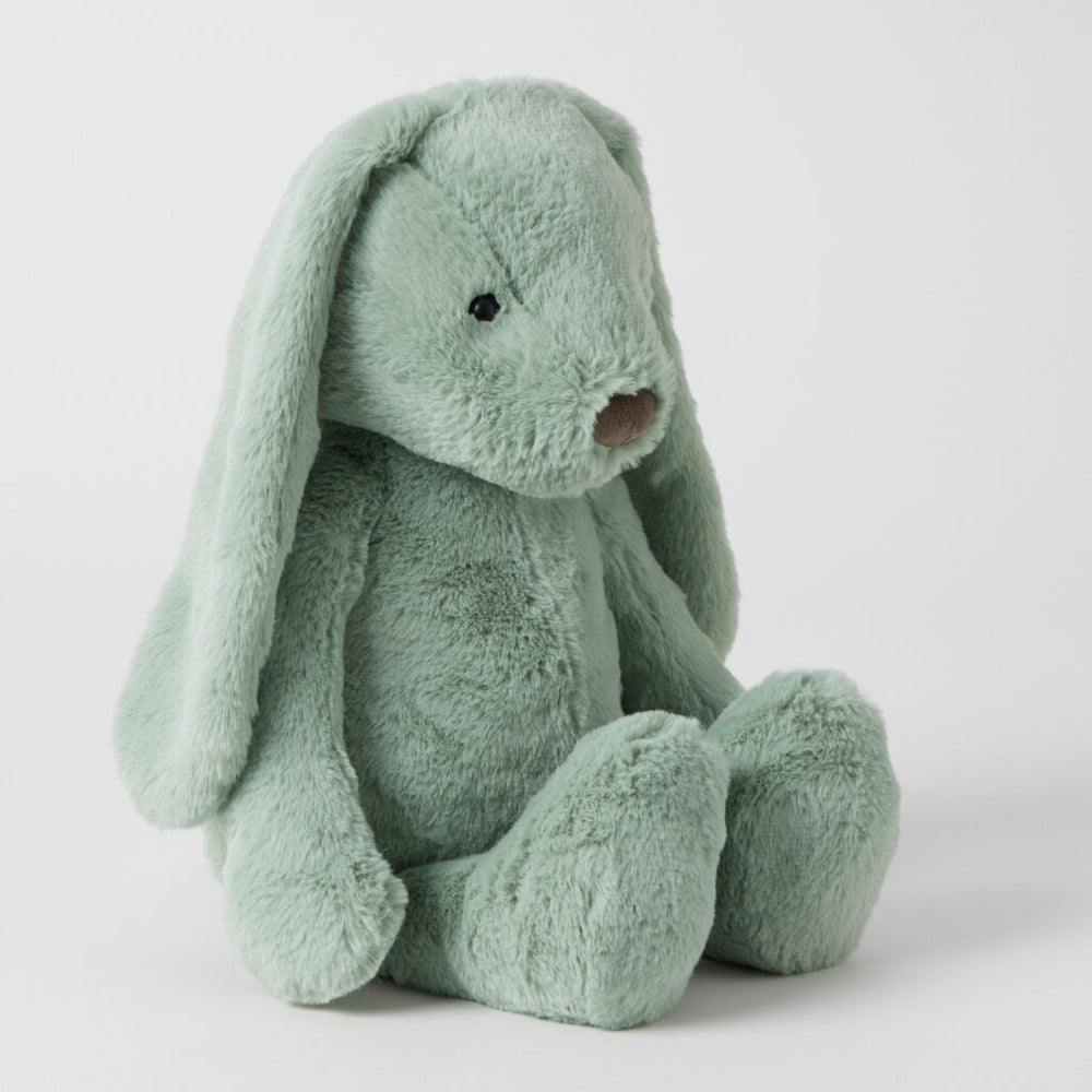 This loveable large bunny is the perfect companion for newborns and toddlers! Made from ultra-plush fabrics and child-safe trimmings, little ones will love the feel of its irresistibly soft fur, making it great for cuddles, and its beanie bottom will help it sit upright during playtime or when displayed on the shelf. This bunny’s large size also lends itself to the best cuddles.